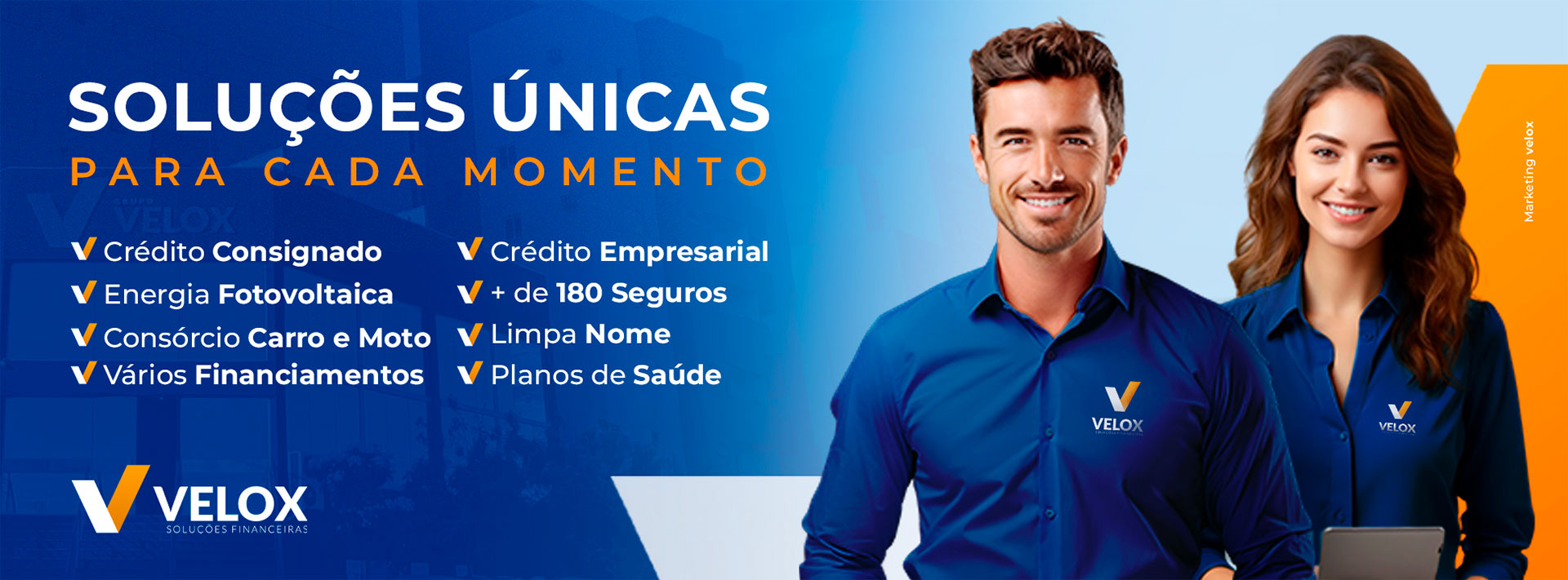 A Velox Atibaia nasceu com o propósito de oferecer soluções financeiras inteligentes e acessíveis para pessoas e empresas que buscam segurança, economia e crescimento. Com um portfólio diversificado de serviços, atuamos nas áreas de consórcios, financiamentos, energia fotovoltaica, empréstimos, seguros e muito mais.